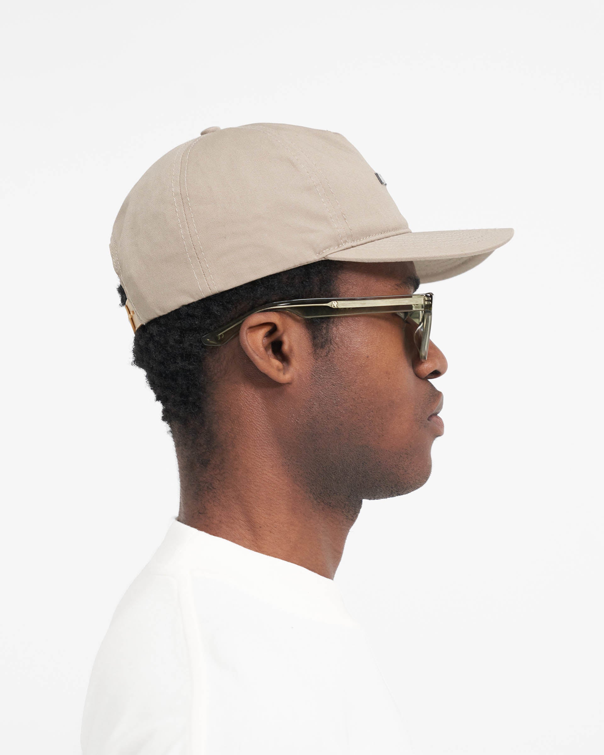 Introducing the Represent Cap in Washed Taupe, a clean golfer cap silhouette featuring metal Represent lettering to the front.